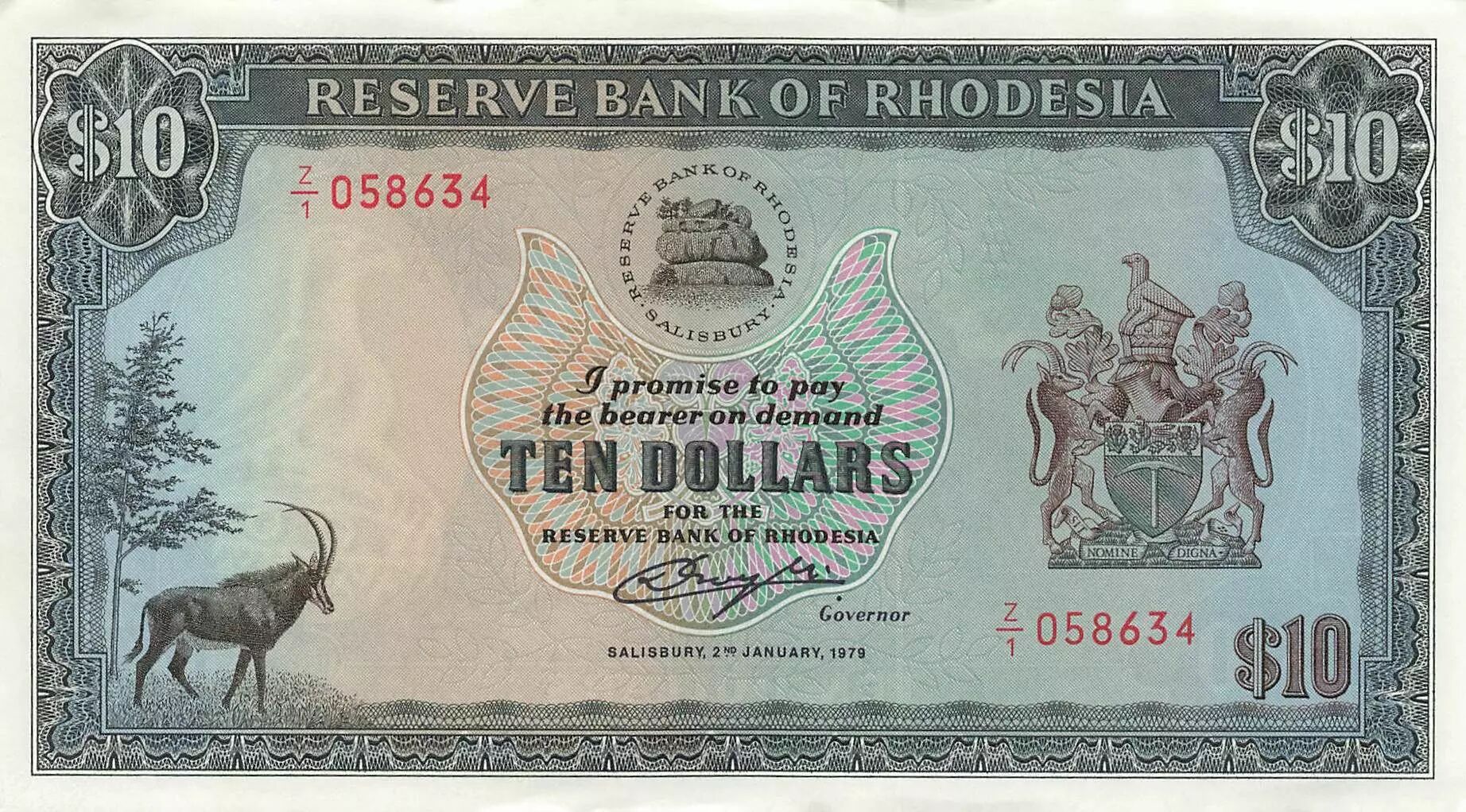 Home > World Banknotes > African Banknotes > Rhodesia > Rhodésie 10 Dollars - 02-01-1979 - Replacement - P.41