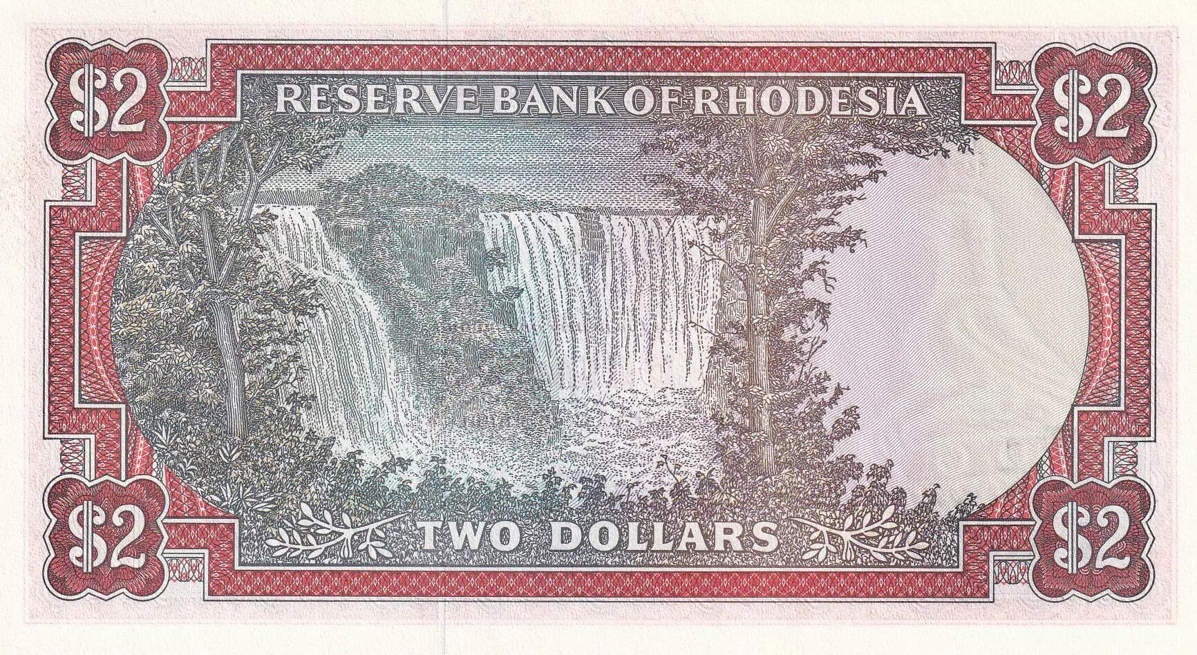 Home > > Rhodésie 2 Dollars - Arms - Victoria Fall - 1977 - P.31d