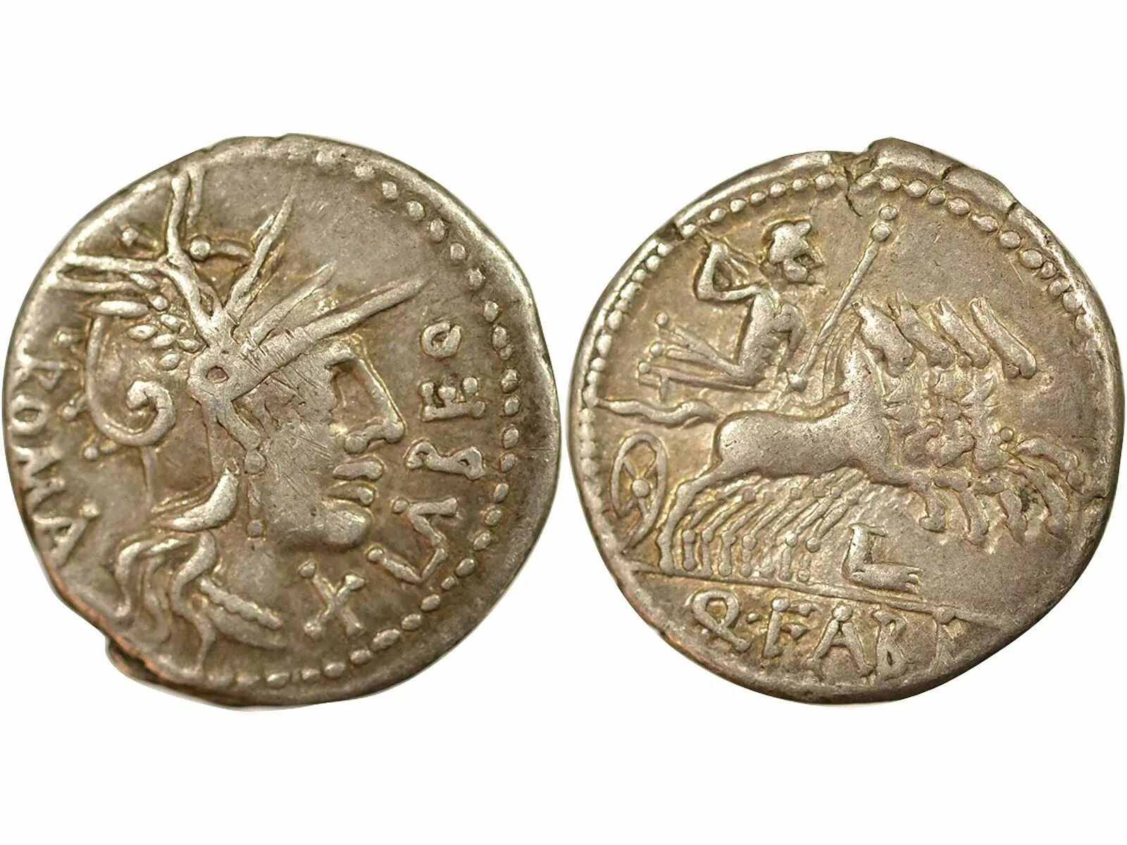 Home > > Roma Republic Fabia Gens - Silver Denarius - 124 BC Rome