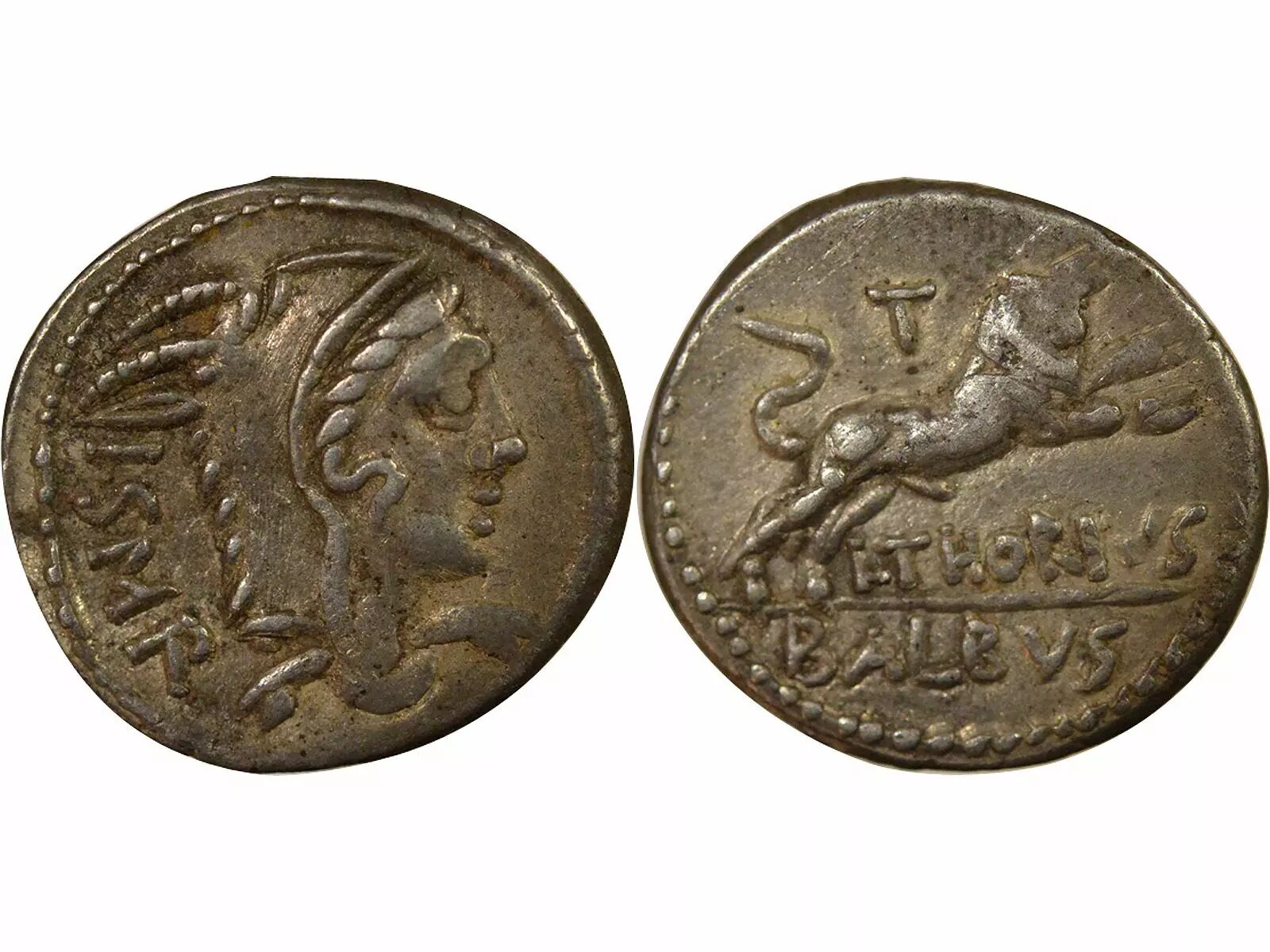 Coin Roma Republic Gens Thoria, Balbus - Silver Denarius - 105 BC Rome