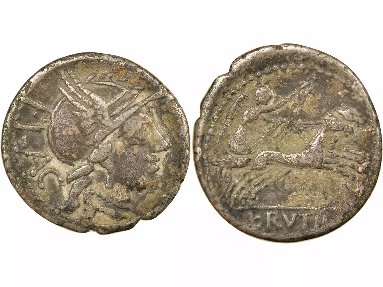 Coin Roma Republic Rutilia Gens - Silver Denarius - 77 BC Rome