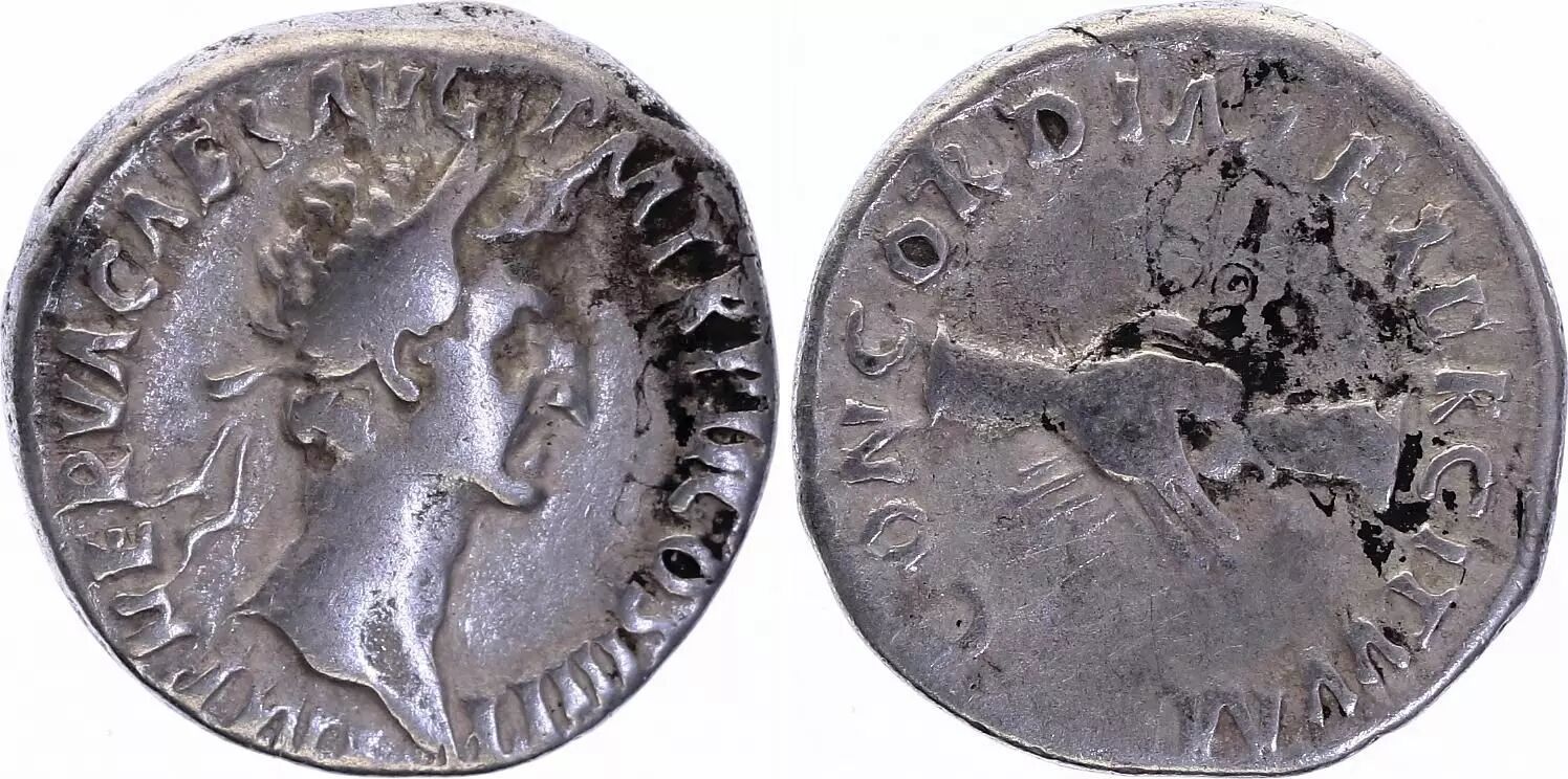 Coin Roman Empire Denarius, Nerva (96-98) - CONCORDIA EXERCITVVM