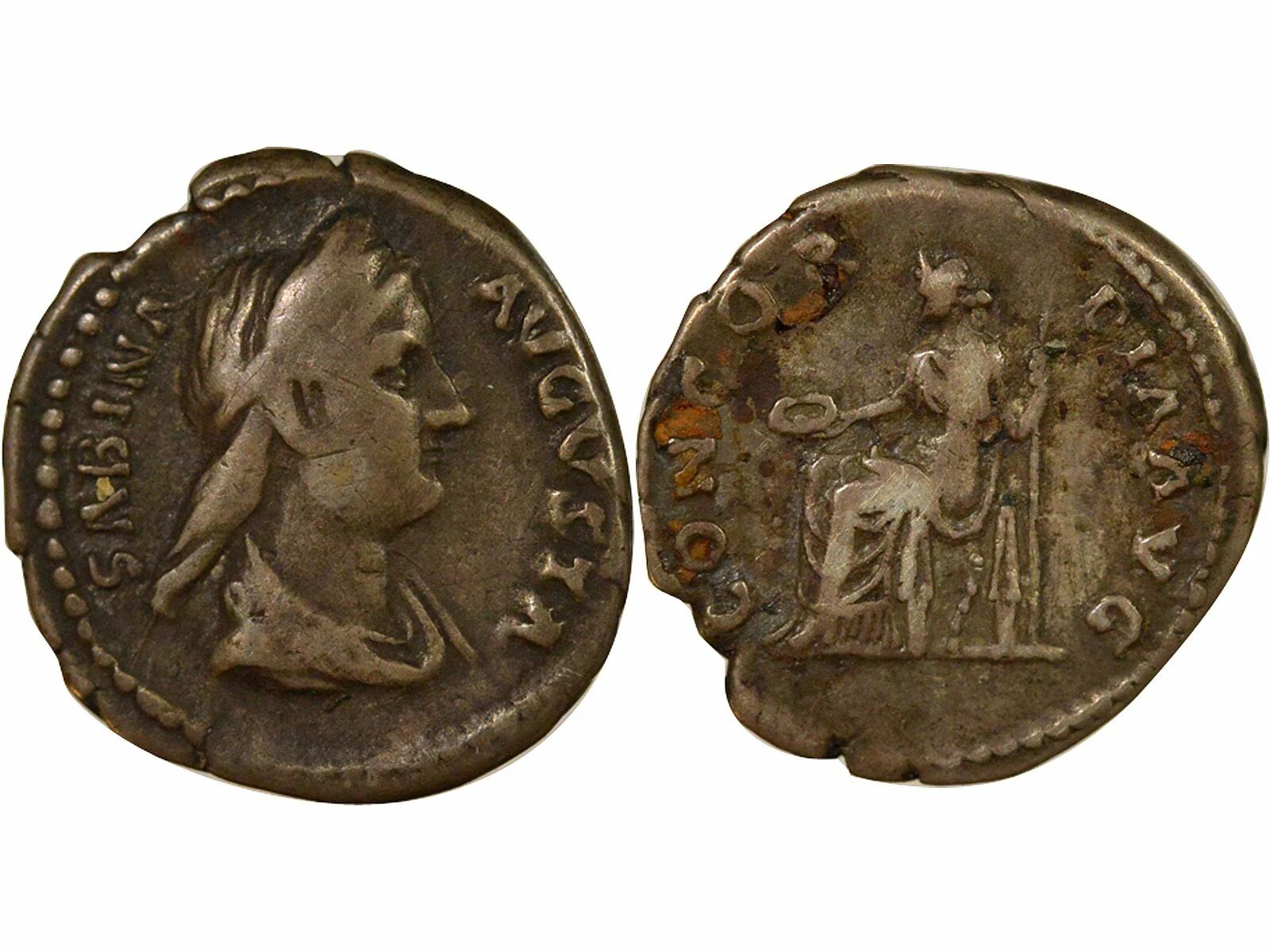 Home > Ancient Coins > Roman Coins (-27 to 476) > Antonines (96 to 192) > Roman Empire Sabina - Silver Denarius, Seated Concordia - 129 Rome