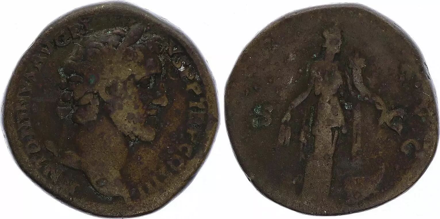 Home > > Roman Empire Sestertius, Antoninus Pius - 142 Rome - ANNONA AVG - F