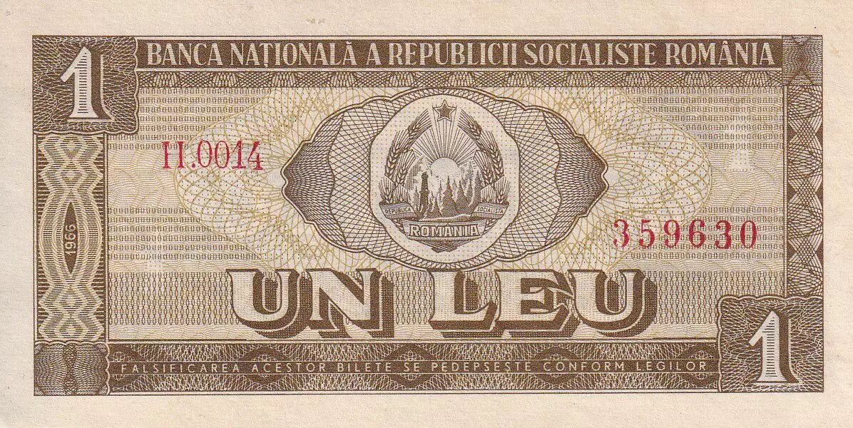 Banknote Romania 1 Leu - 1966 - Serial H.0014 - P.91