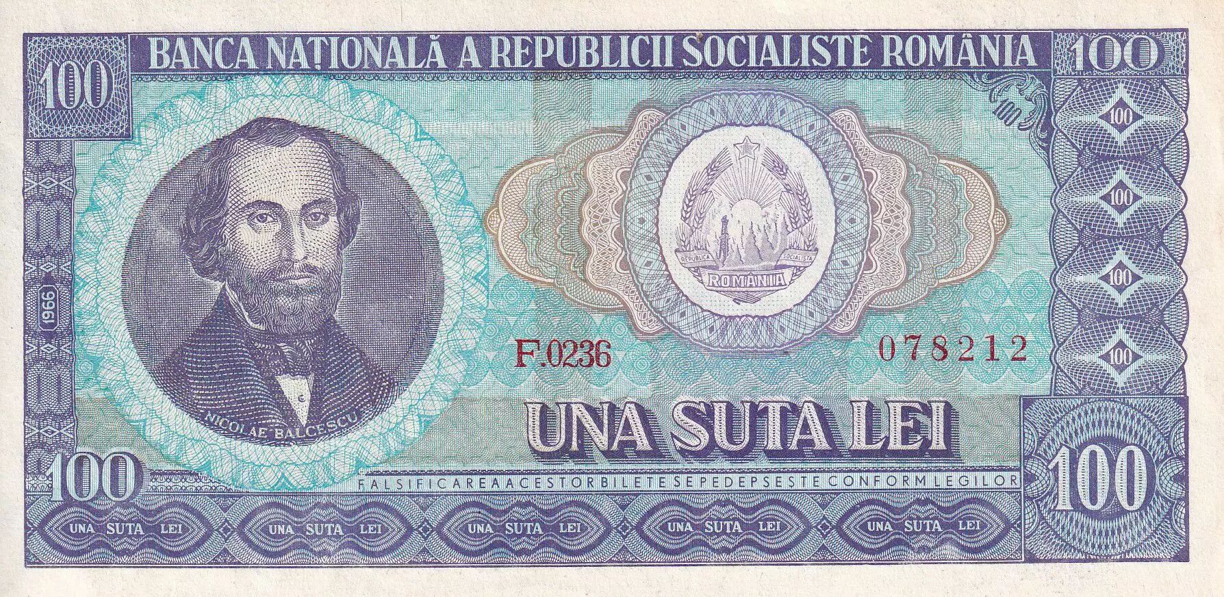 Banknote Romania 100 Lei - Nicolae Balcescu - 1966 - Serial F.0236 - P.97