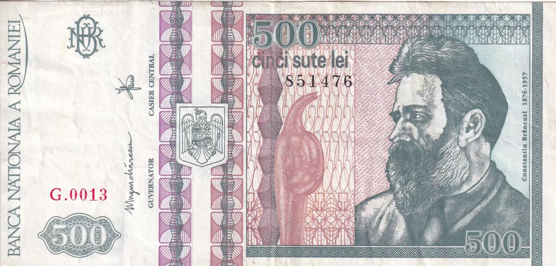 Banknote Romania 500 Lei - Constantin Brancusi - 1992 - Serial G.0013 - P.101b