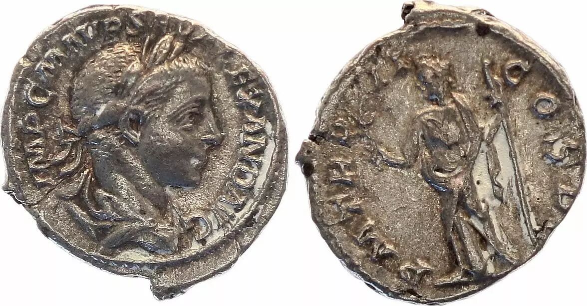Ce denier a été frappé sous le règne d'Alexandre Sévère, empereur romain de 222 à 235 après J.-C. La pièce est en argent et pèse 2.92 grammes. Son diamètre est de 18 millimètres.