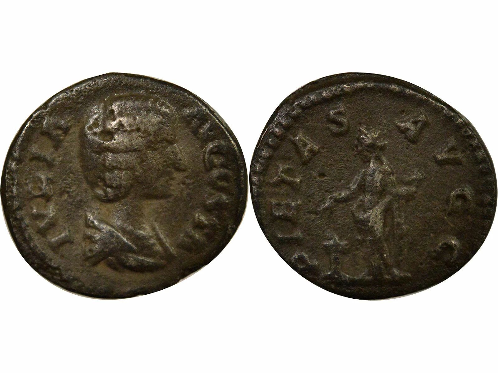 Le choix de Pietas sur le monnayage s?inscrit dans un registre idéologique valorisant la dévotion religieuse et la fidélité aux traditions. Toutefois, l?association directe avec les jeux séculaires doit être nuancée : ceux célébrés par Septime Sévère ont lieu en 204, mais l?iconographie de la Pietas dépasse ce seul événement et correspond plus largement à un thème récurrent de la propagande impériale. Cette figure permet de renforcer l?image de légitimité du pouvoir, en associant la famille impériale à la piété et à la protection divine, éléments essentiels dans la construction de l?autorité politique romaine. Elle contribue également à inscrire l?impératrice dans un rôle de garante des valeurs religieuses et morales.