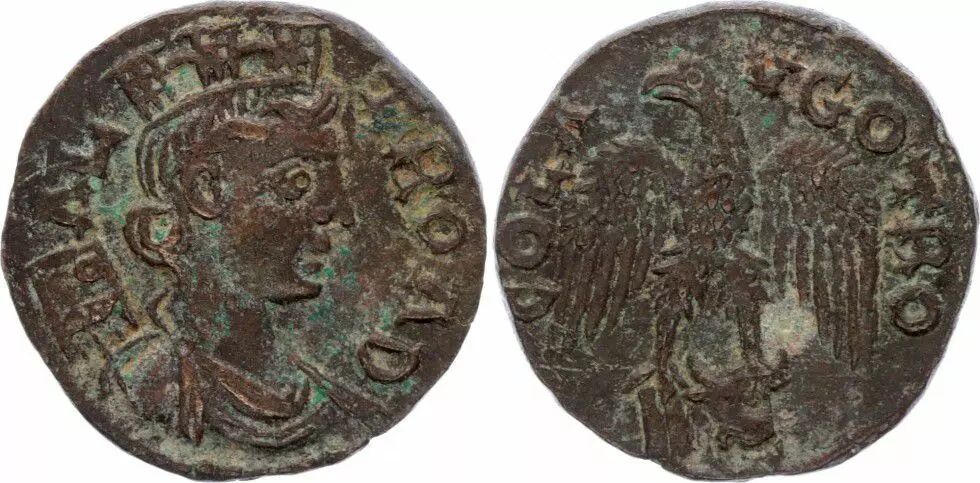 Alexandria (Troade) - Tyche, Eagle head at left (250-268) Legend obverse : COL AVG O TRO, on the vexillum CO/AV, Legend reverse : AL TROAD
