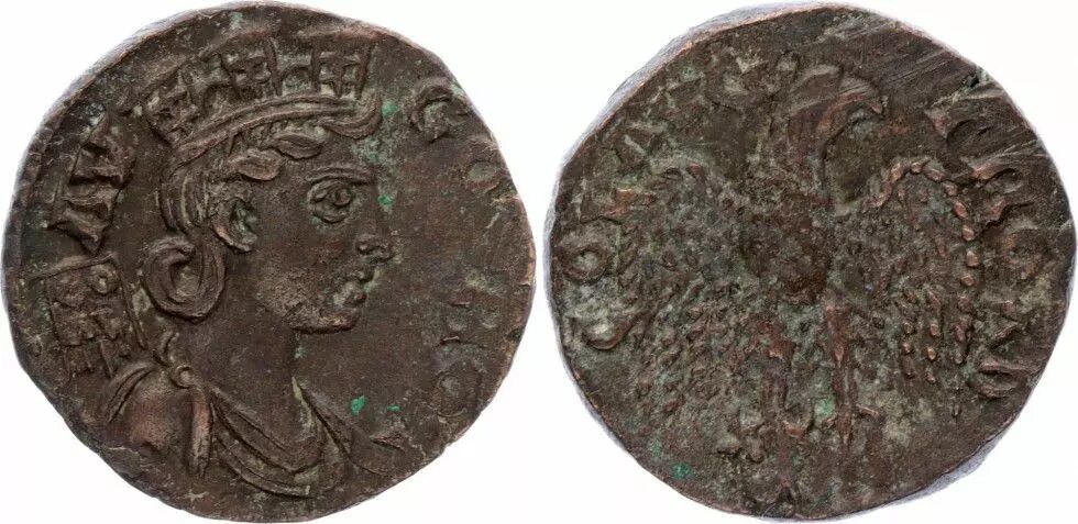Alexandrie (Troade) - Tychè, Aigle Tête à Droite (250-268) Légende Avers : COL AVG TROAD, sur le vexillum CO/AV, Légende Revers : AUG O TROA