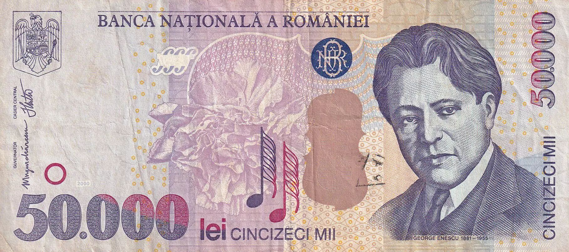 Billet Roumanie 50 000 Lei - George Enescu - 2000 - P.109
