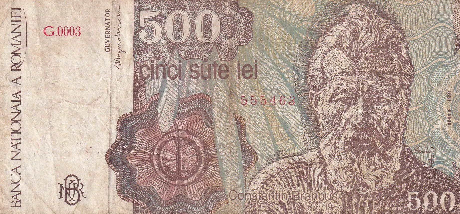 Accueil > Archivage > Roumanie 500 Lei - Constantin Brancusi - 1991 - P.98b