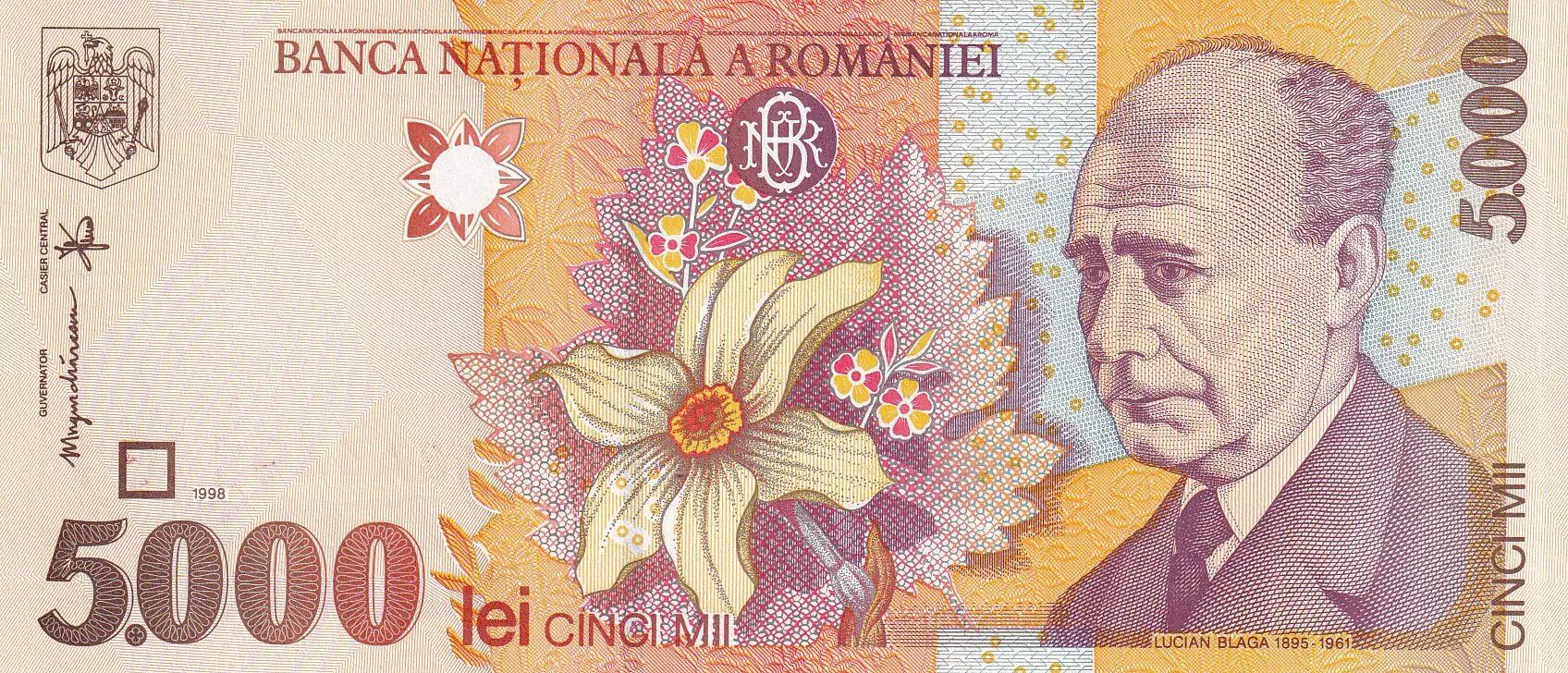 Billet Roumanie 5000 Lei - Lucian Blaga - 1998 - P.107