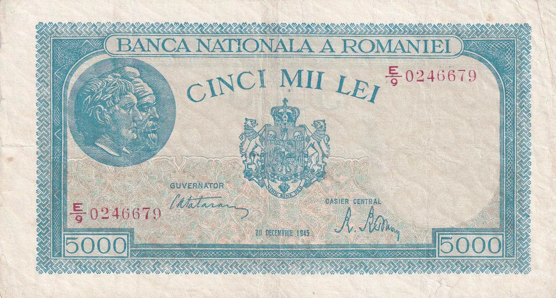 Accueil > Archivage > Roumanie 5000 Lei - Trajan & Decebal - 20-12-1945 - Série E.9 - P.56
