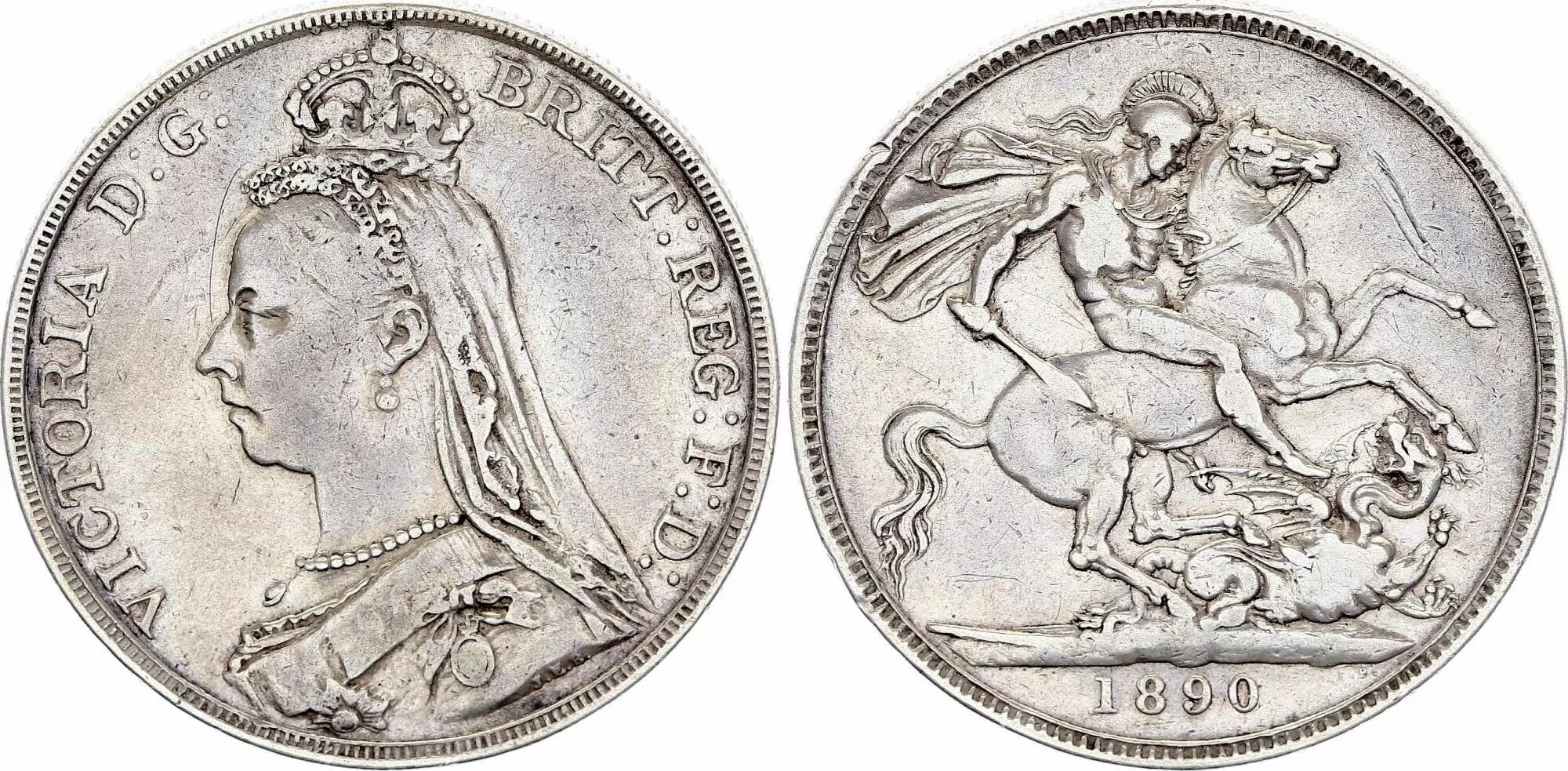 Pièce Royaume-Uni 1 Crown Victoria - St George et Dragon - 1890 Argent
