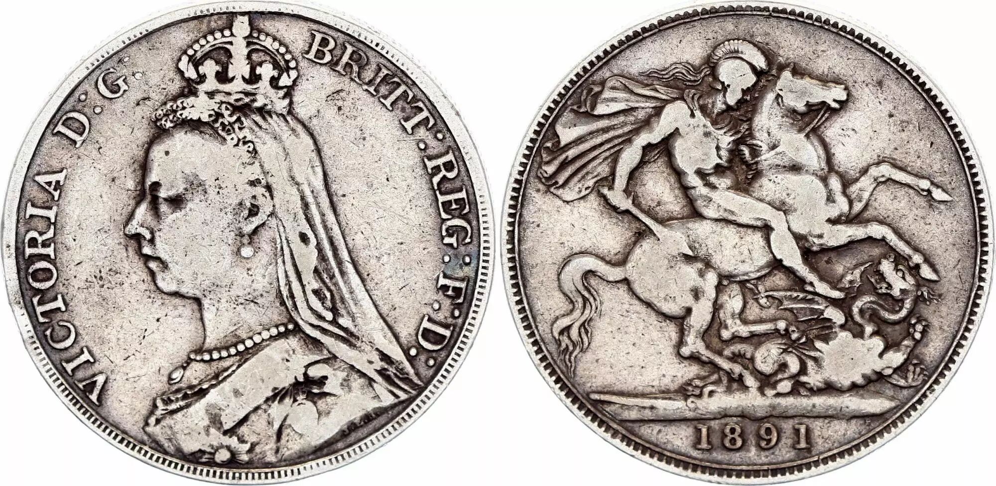 Pièce Royaume-Uni 1 Crown Victoria - St George et Dragon - 1891 Argent