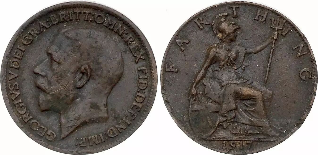 Pièce Royaume-Uni 1 Farthing 1912-1918 - Britannia, George V