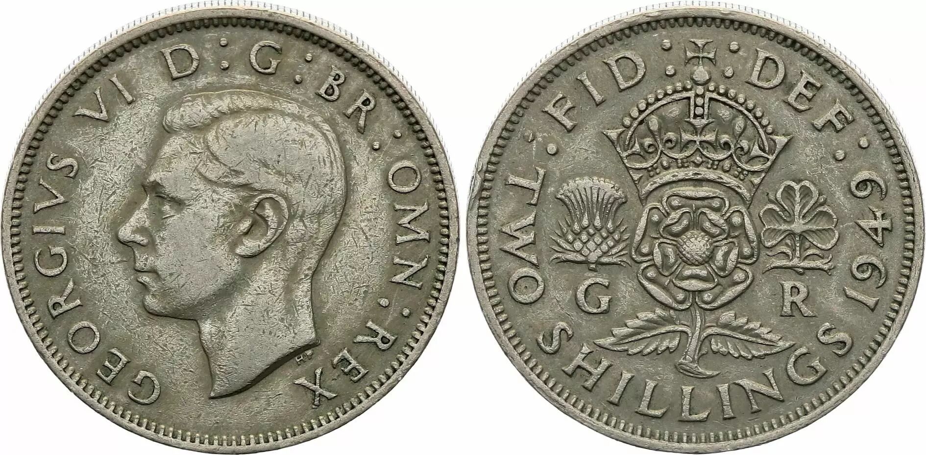 Accueil > Monnaies du monde > Monnaies d'Europe > Royaume-Uni > Royaume-Uni 1 Florin (2 Shillings) années 1949-1951 - Armoiries, George VI