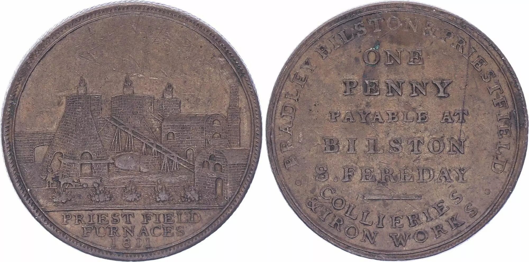 Pièce Royaume-Uni 1 Penny - Staffordshire Bilston S Fereday - 1811 - Copper Token - TTB