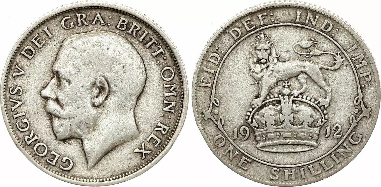 Pièce Royaume-Uni 1 Schilling 1912 - Armoiries, George V argent