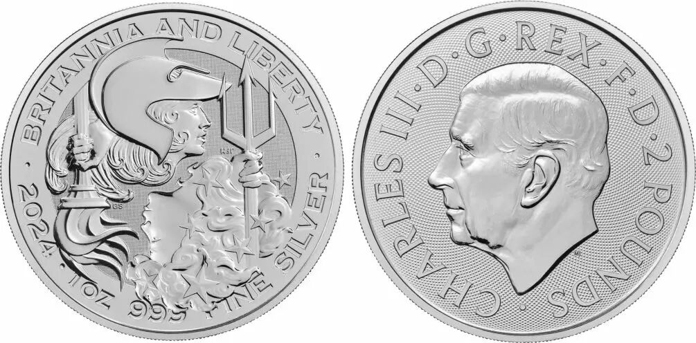 Pièce Royaume-Uni 2 Livres Charles III - Britannia et Liberty - 2024 - Argent