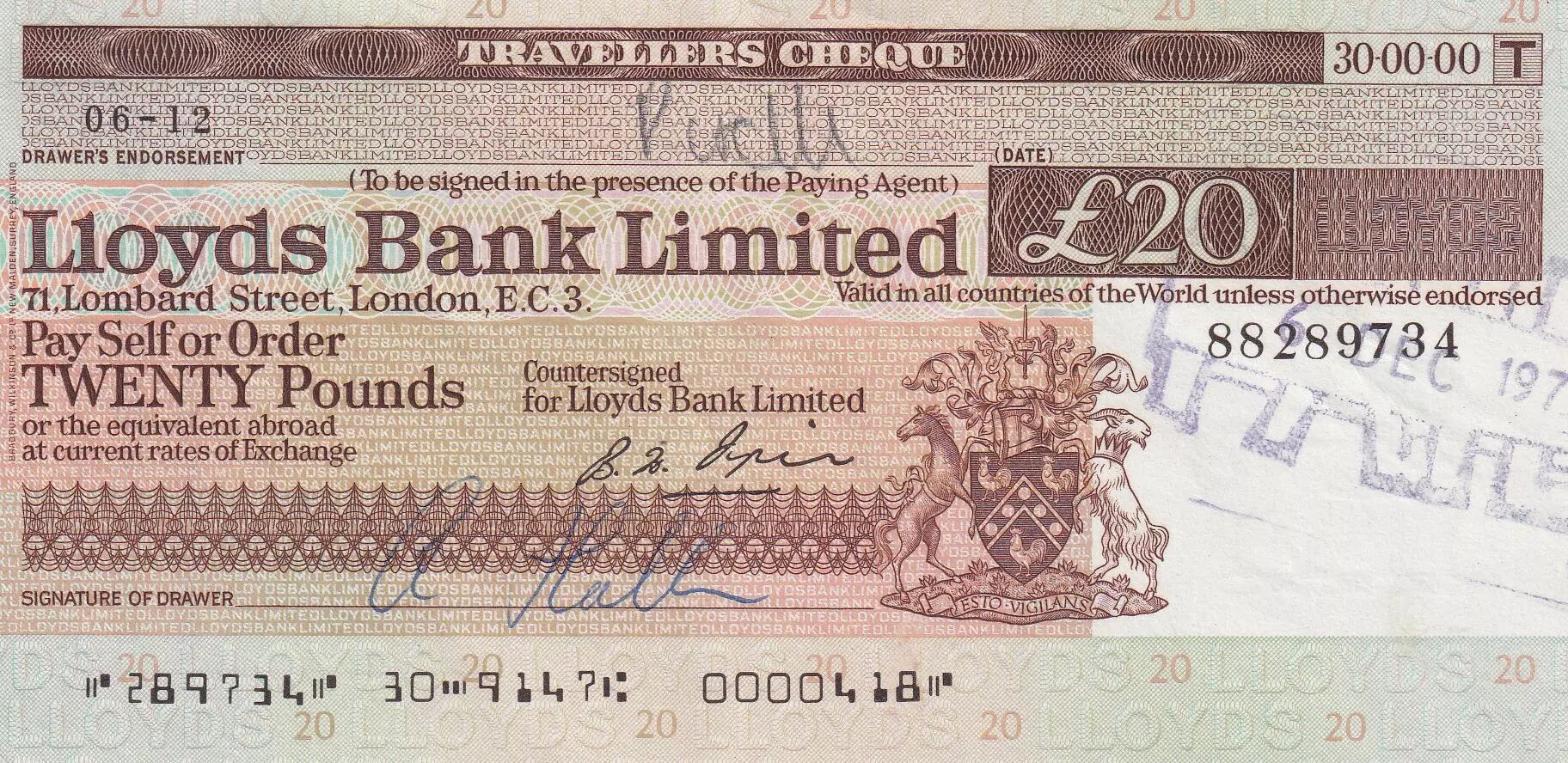 Accueil > Archivage > Royaume-Uni 20 Pounds - Travellers Chèque