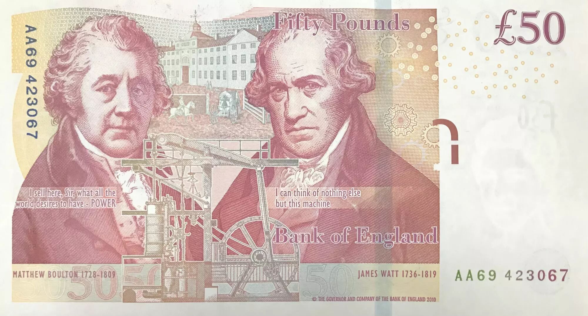 Accueil > Archivage > Royaume-Uni 50 Pounds Elisabeth II - M. Boulton - James Watt - 2010 - P.393a - Série AA