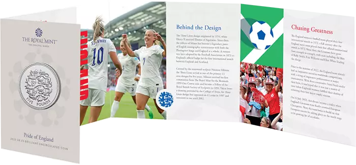 5 Pounds 2023 Royaume-Uni - Three Lions (Football féminin Angleterre)