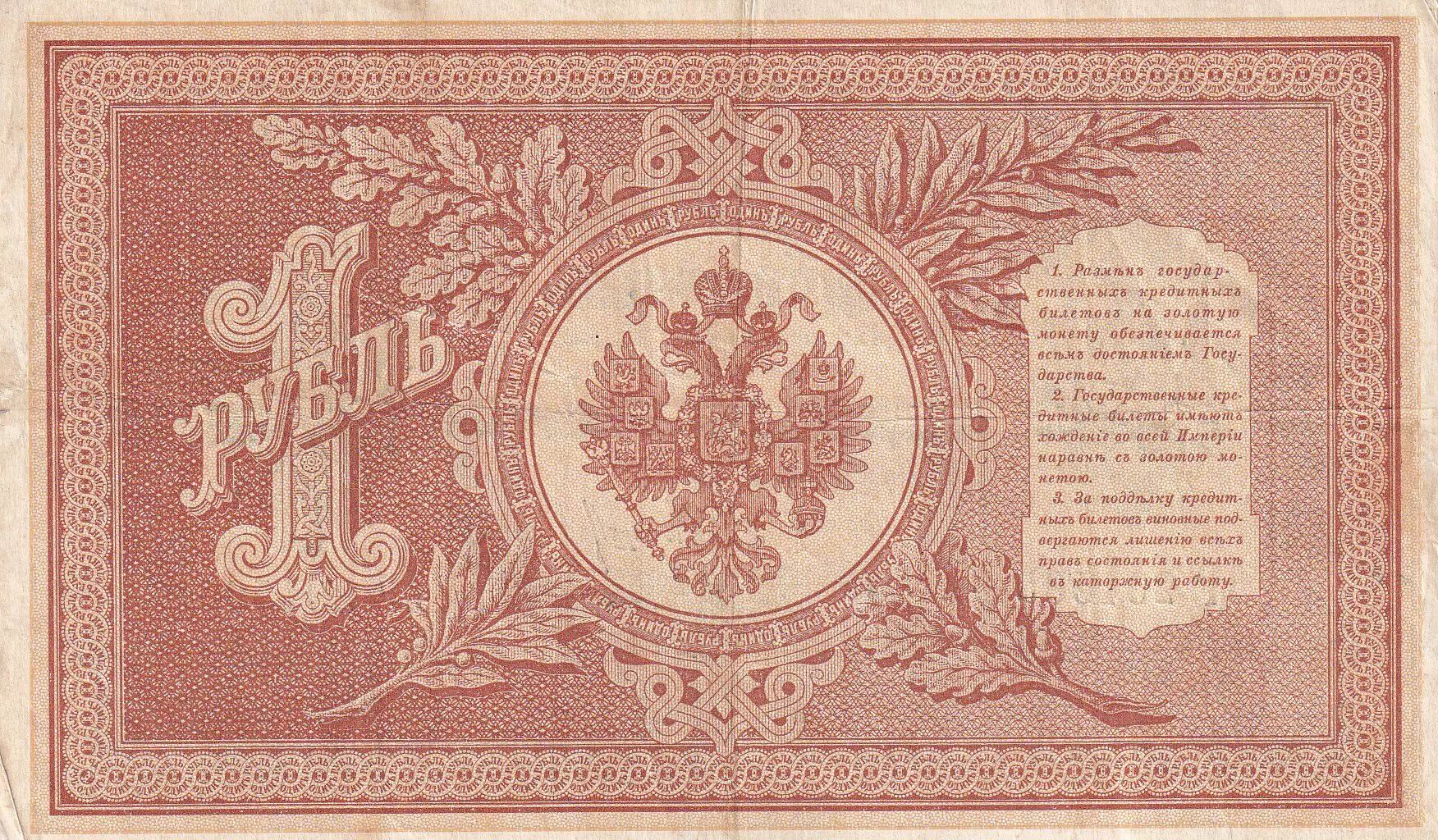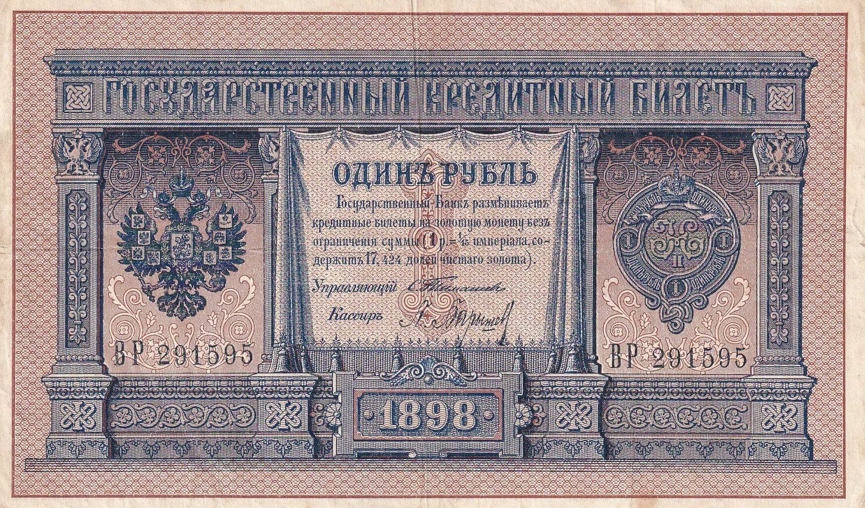 Home > World Banknotes > European Banknotes > Russia > Russian Federation 1 Ruble - Arms - Columns - 1898 - Sign. Timashev (1903-1909) - VF - P1.b