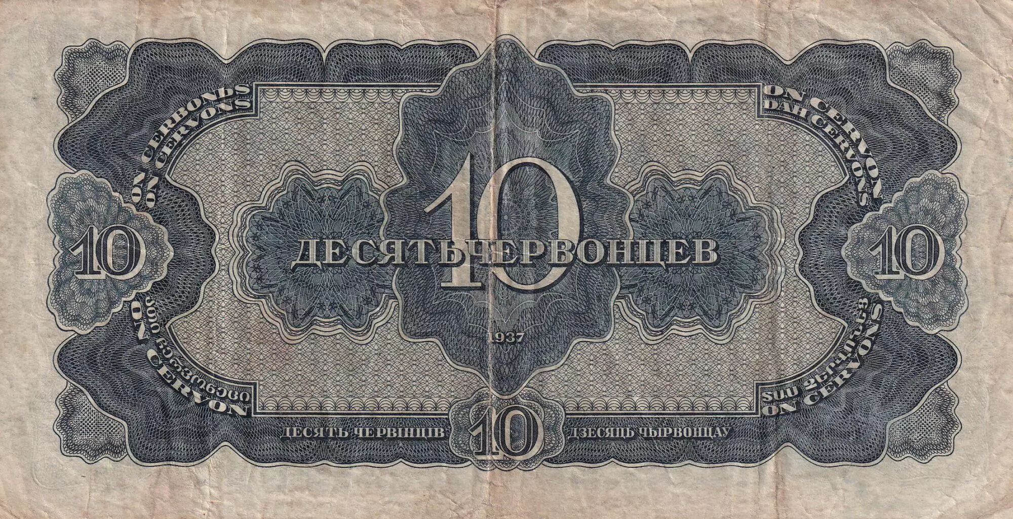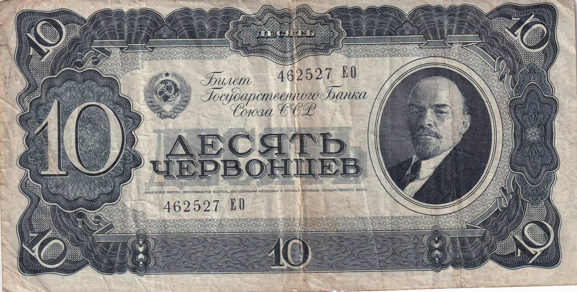 Banknote Russian Federation 10 Chervontsev - Lenin - 1937 - F - P.205