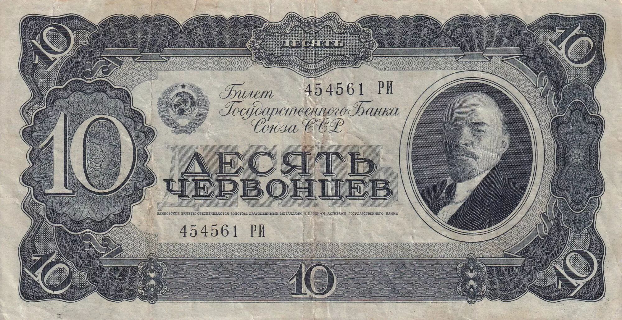 Banknote Russian Federation 10 Chervontsev - Lenin - 1937 - F to VF - P.205