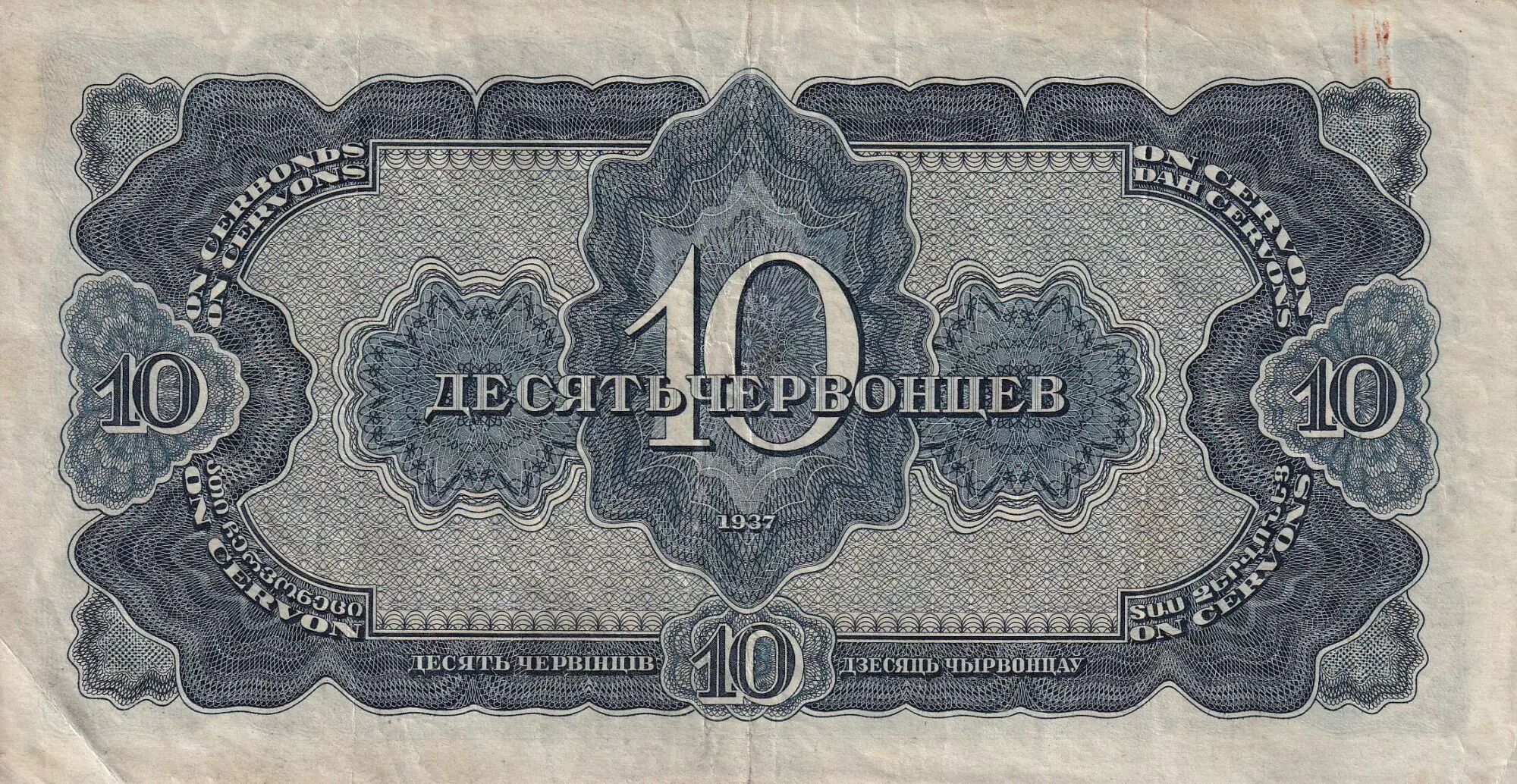 Home > > Russian Federation 10 Chervontsev - Lenin - 1937 - F to VF - P.205