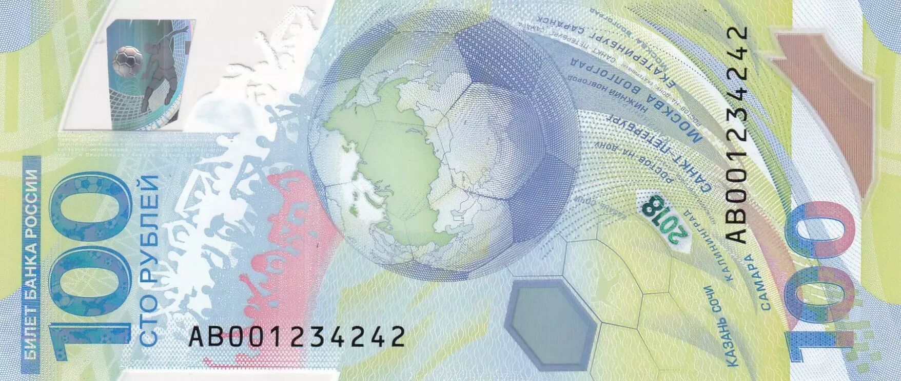 Home > World Banknotes > European Banknotes > Russia > Russian Federation 100 Rubles - Soccer - FIFA cup 2018 - Polymer