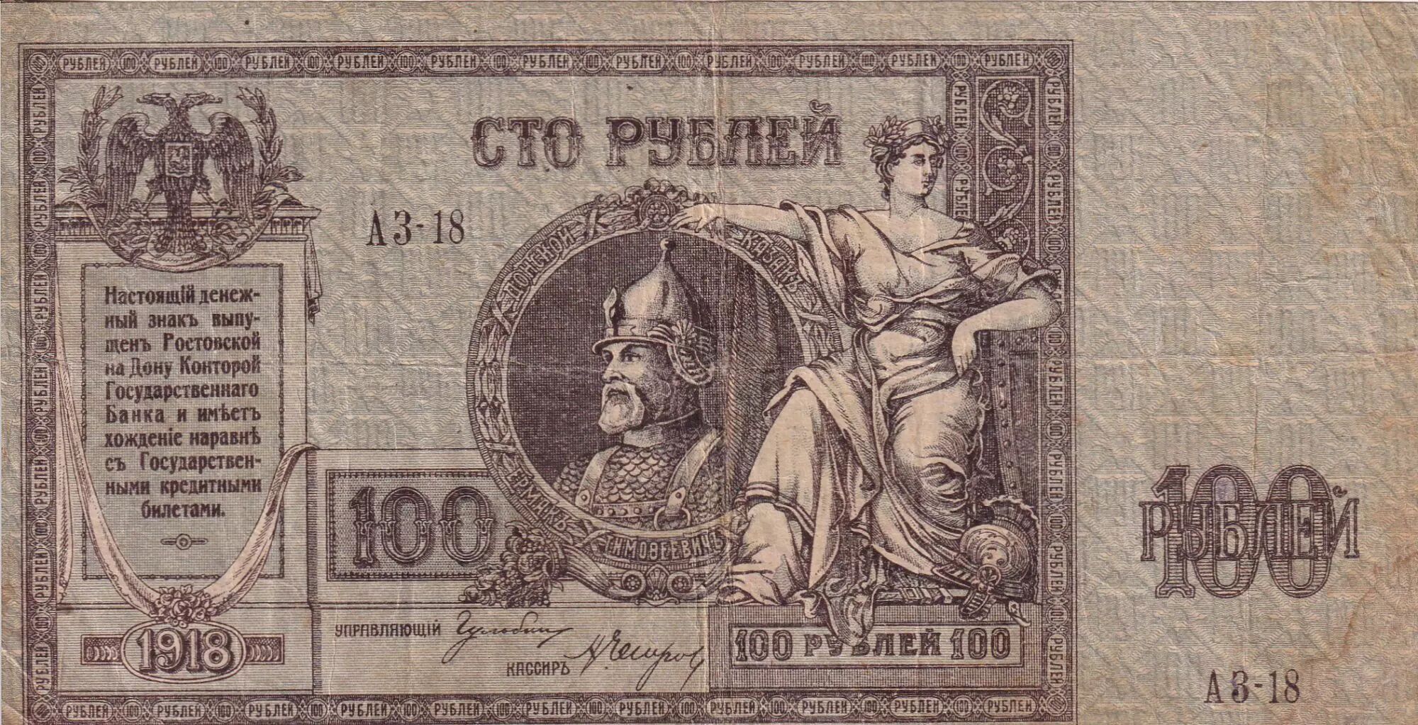 Home > > Russian Federation 100 Rubles - South Russia - 1918 - P.S413