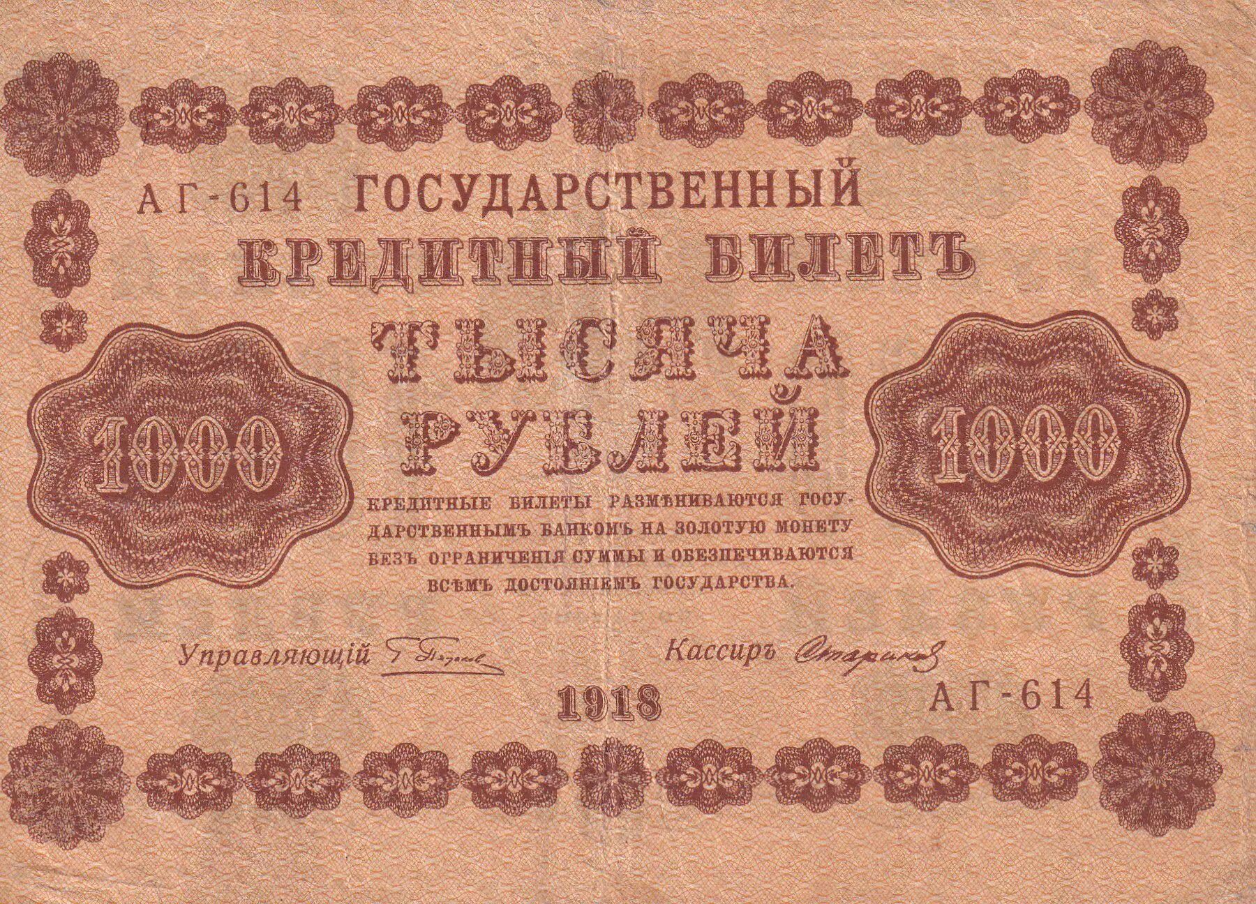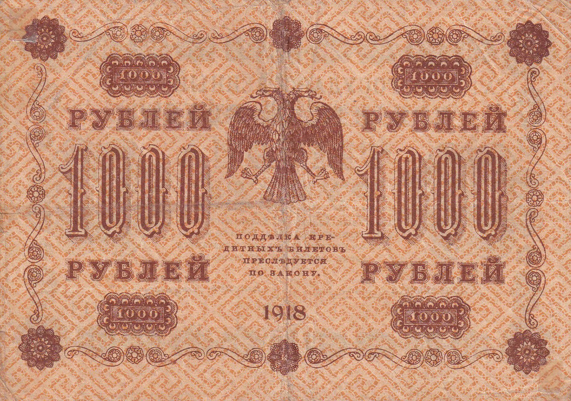 Home > > Russian Federation 1000 Rubles - Eagle - 1918 - P.95