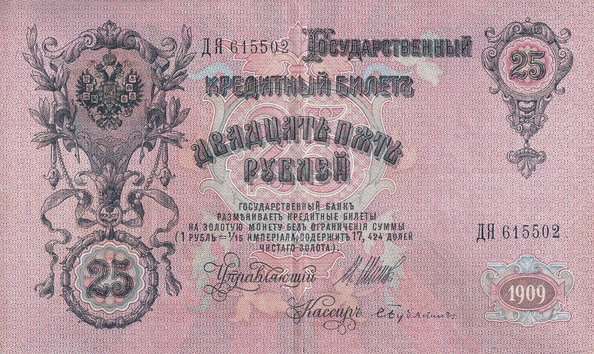 Banknote Russian Federation 25 Rubles - Alexander III - 1909 - P.12b