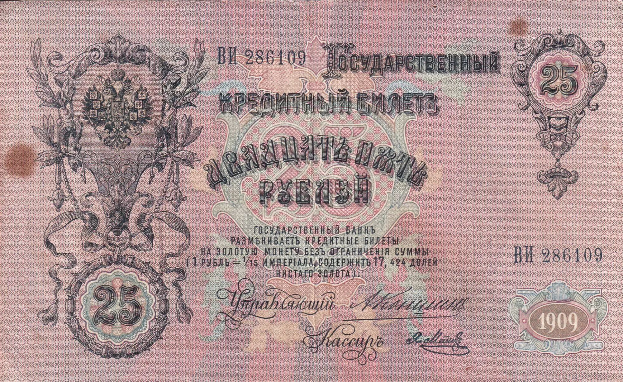 Banknote Russian Federation 25 Rubles - Alexander III - Sign Konshin (1909-1912) - P.12a