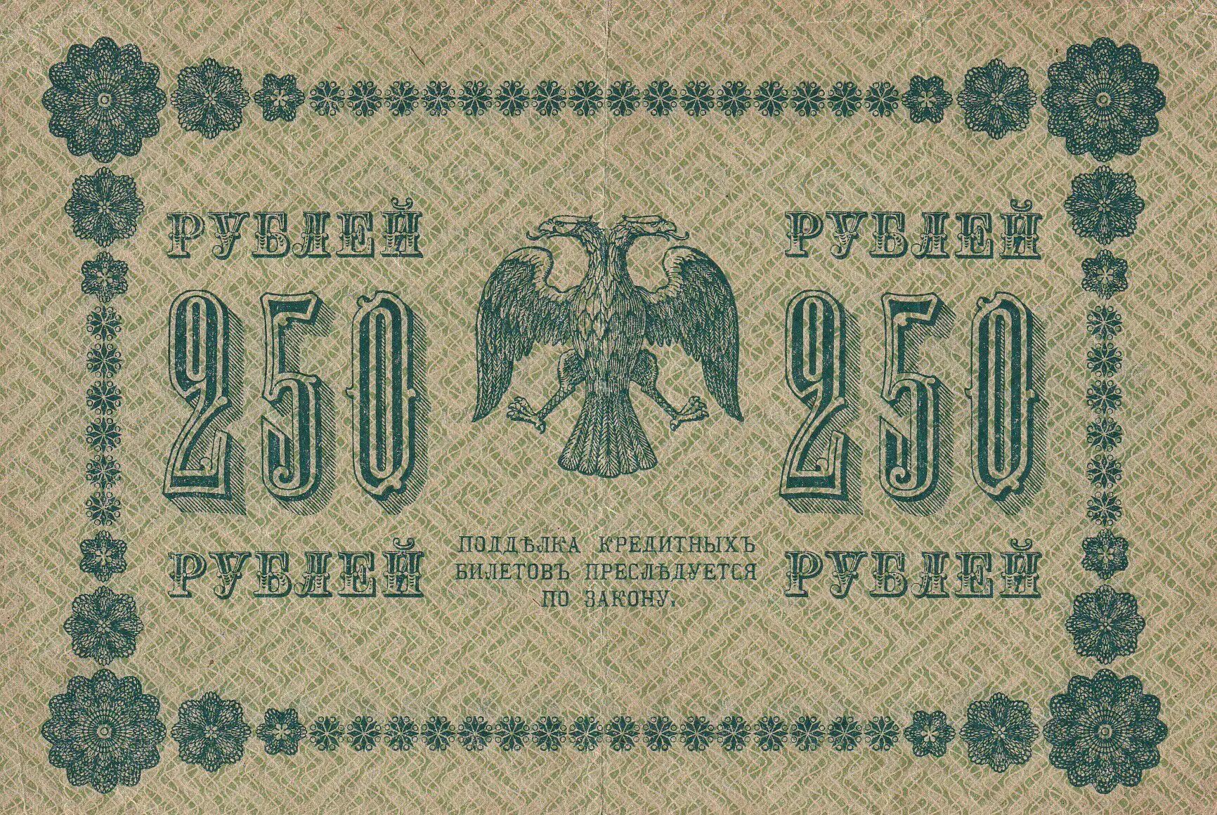 Banknote Russian Federation 250 Rubles - Eagle - 1918 - Serial AA - P.93