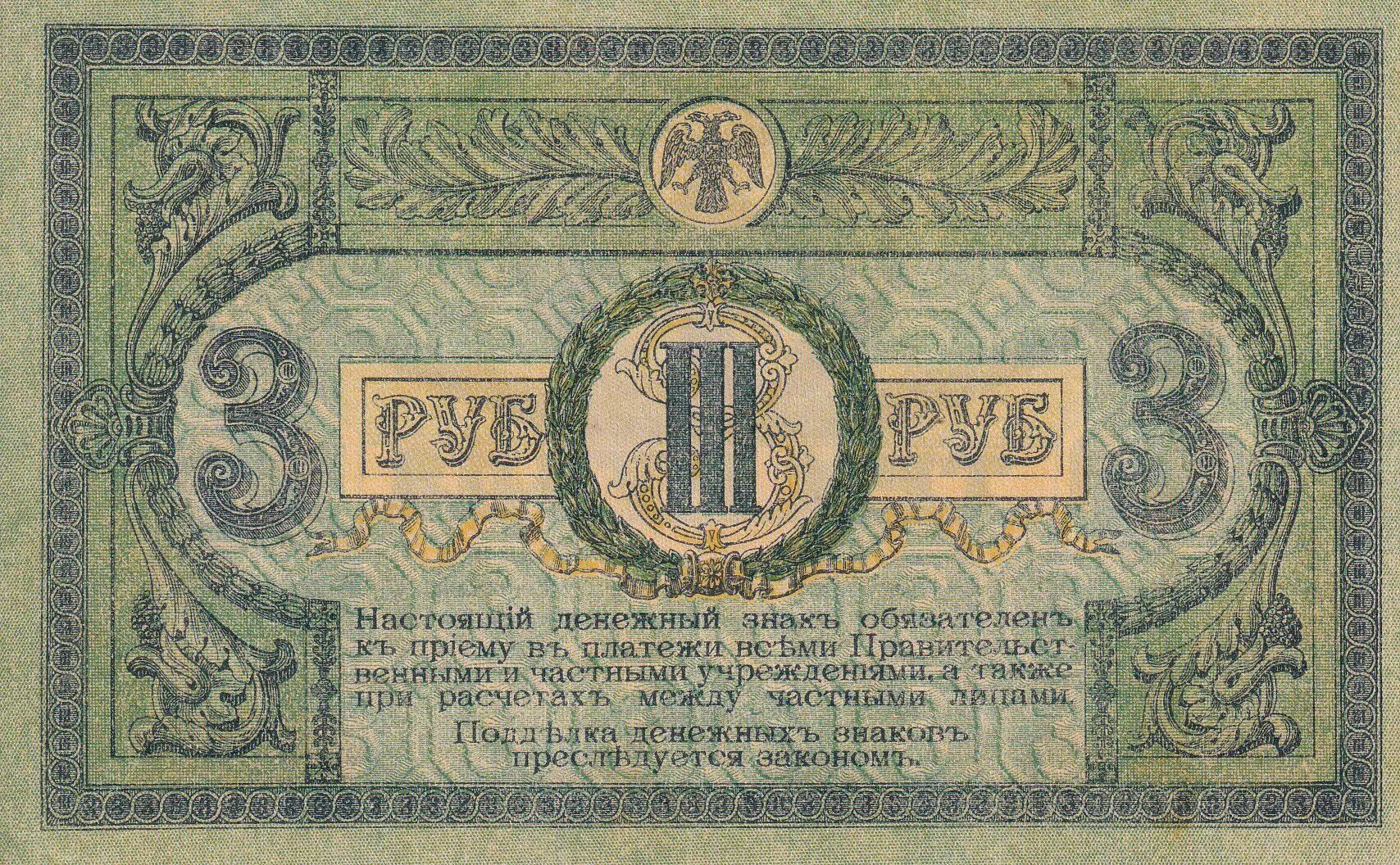 Banknote Russian Federation 3 Roubles - South Russia - Imperial eagle - 1918 - XF to AU