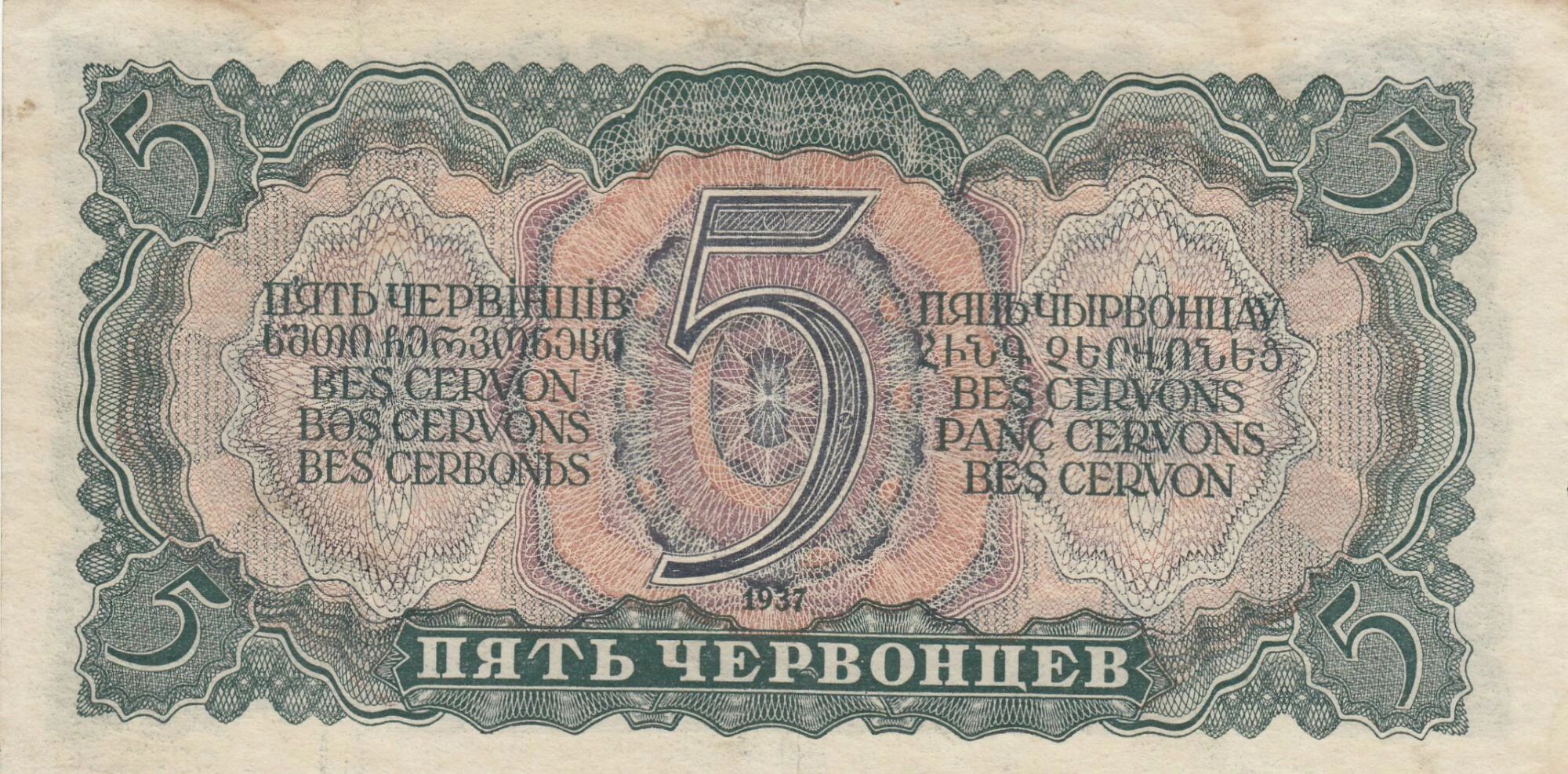 This 5 chervontsev banknote bears witness to the historical and political context of the Soviet Union in the 1930s, a period of consolidation of Soviet power and promotion of communist ideology.