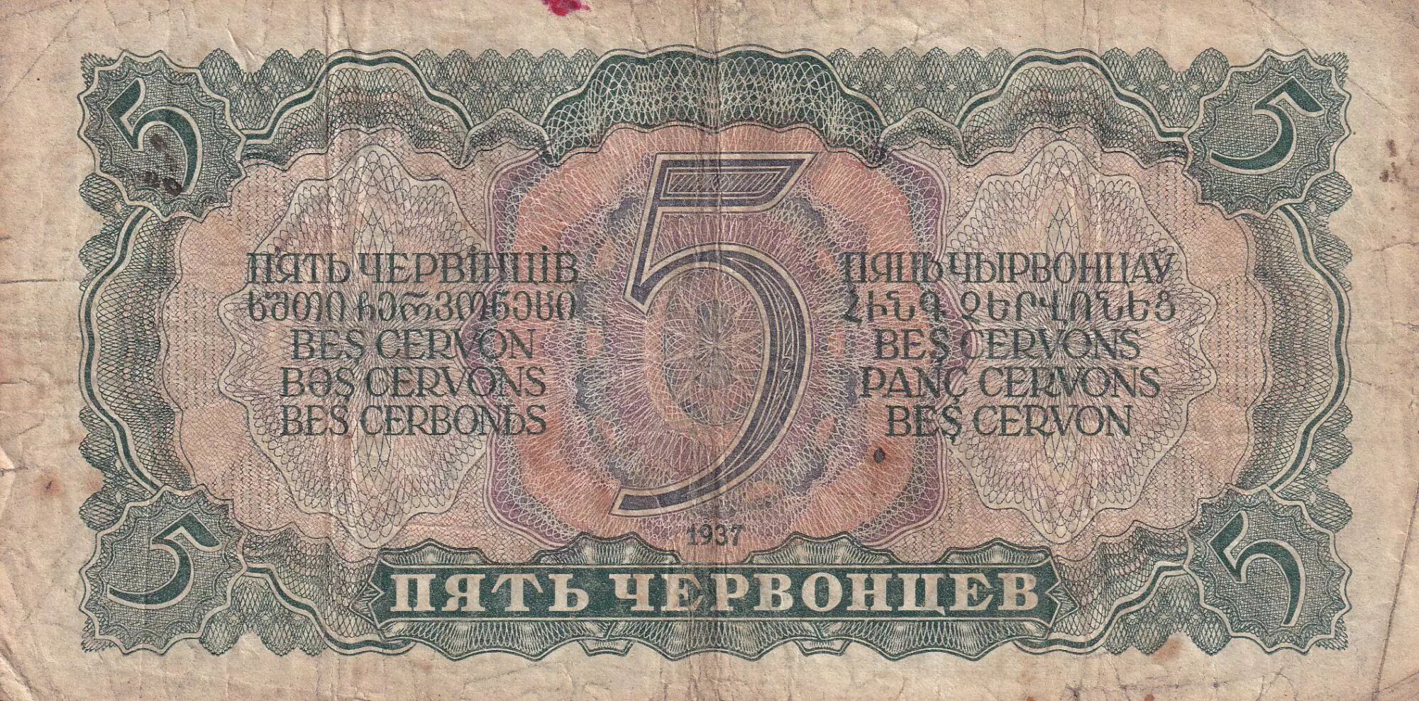 Banknote Russian Federation 5 Chervontsev - Lenin - 1937 - P.204
