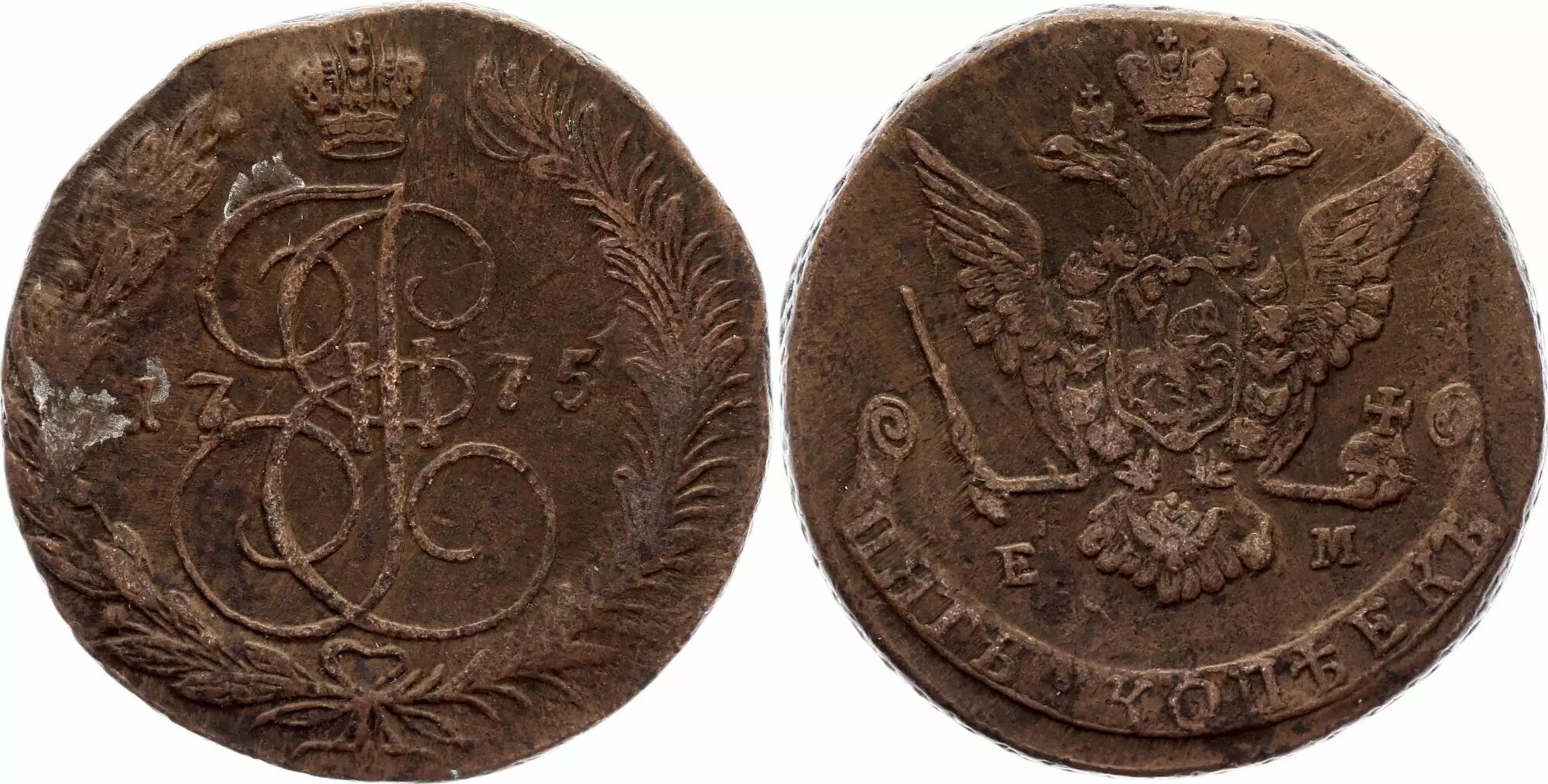 Home > > Russian Federation 5 Kopeks - Katharina II - 1775 EM Ekaterinburg