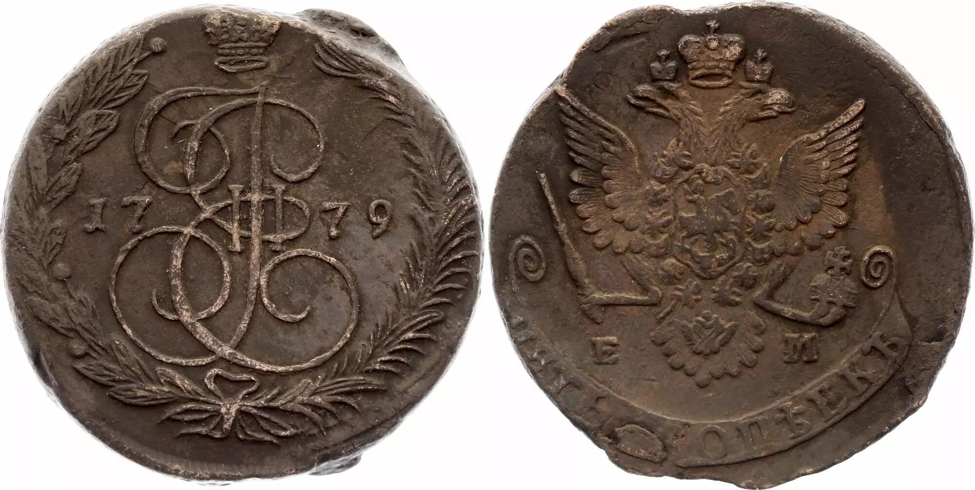 Home > World Coins > European Currencies > Russia > Russian Federation 5 Kopeks - Katharina II - 1779 EM Ekaterinburg