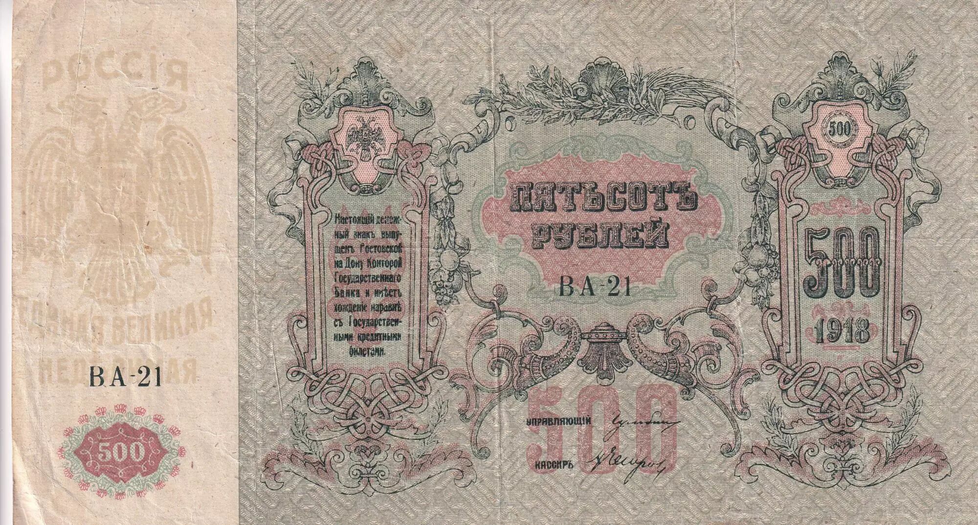 Banknote Russian Federation 500 Rubles - South Russia - 1918 - P.S415