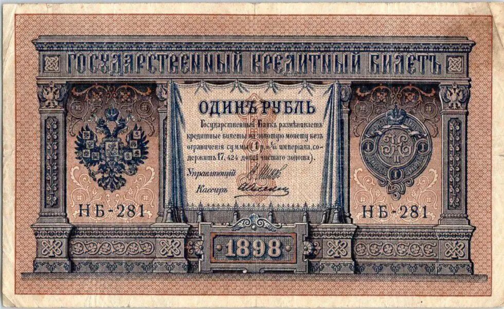 Billet Russie 1 Rouble 1898 Armoiries - Colonnes - Sign. Shipov (1912-1917)