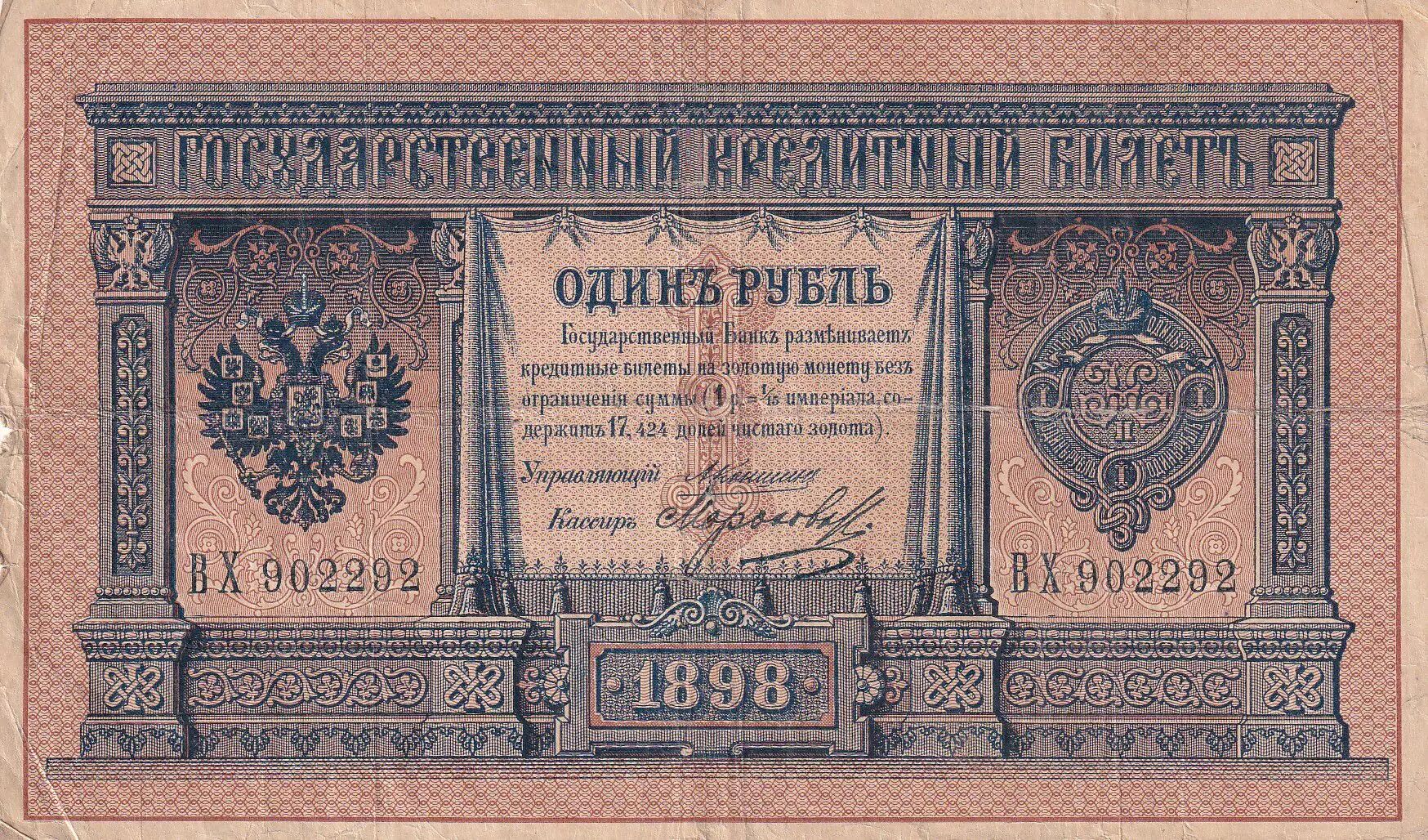 Accueil > Archivage > Russie 1 Rouble - Armoiries - Colonnes - 1898 - Sign. Konshin (1909-1912) - TB - P1.c