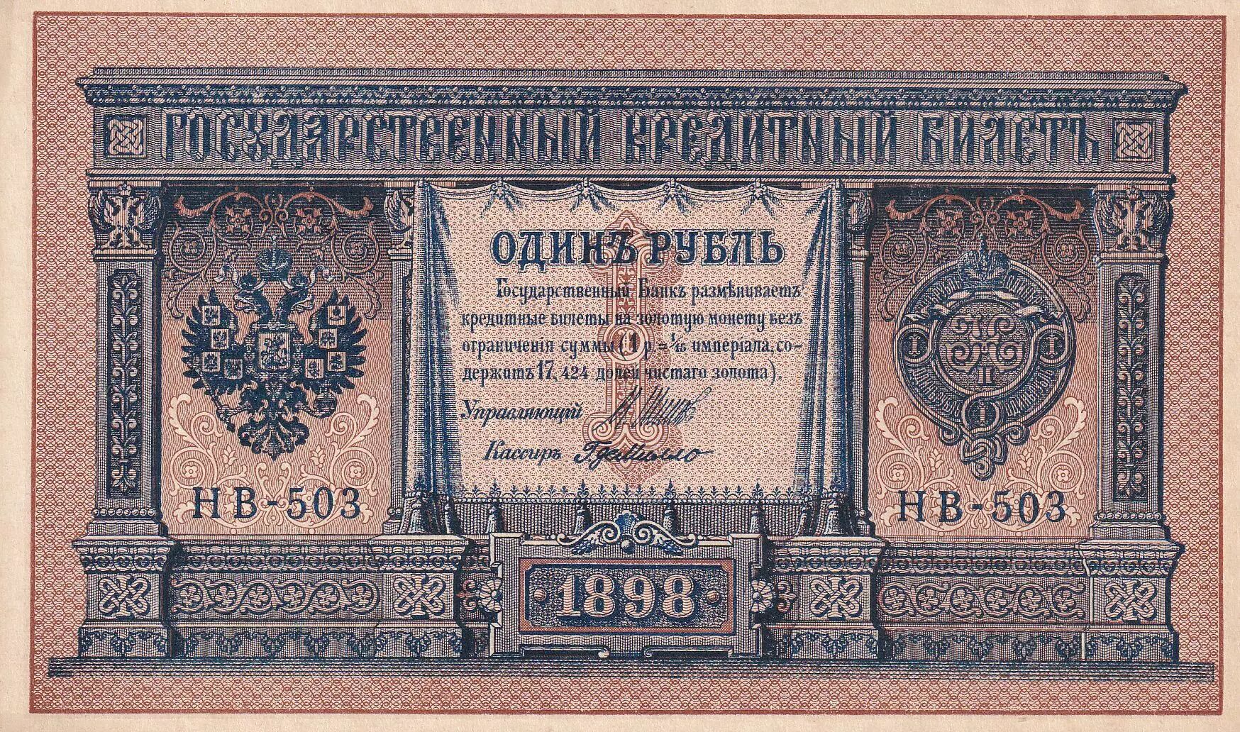 Accueil > Archivage > Russie 1 Rouble - Armoiries - Colonnes - 1898 - Sign. Shipov (1912-1917) - SPL+ - P1.d
