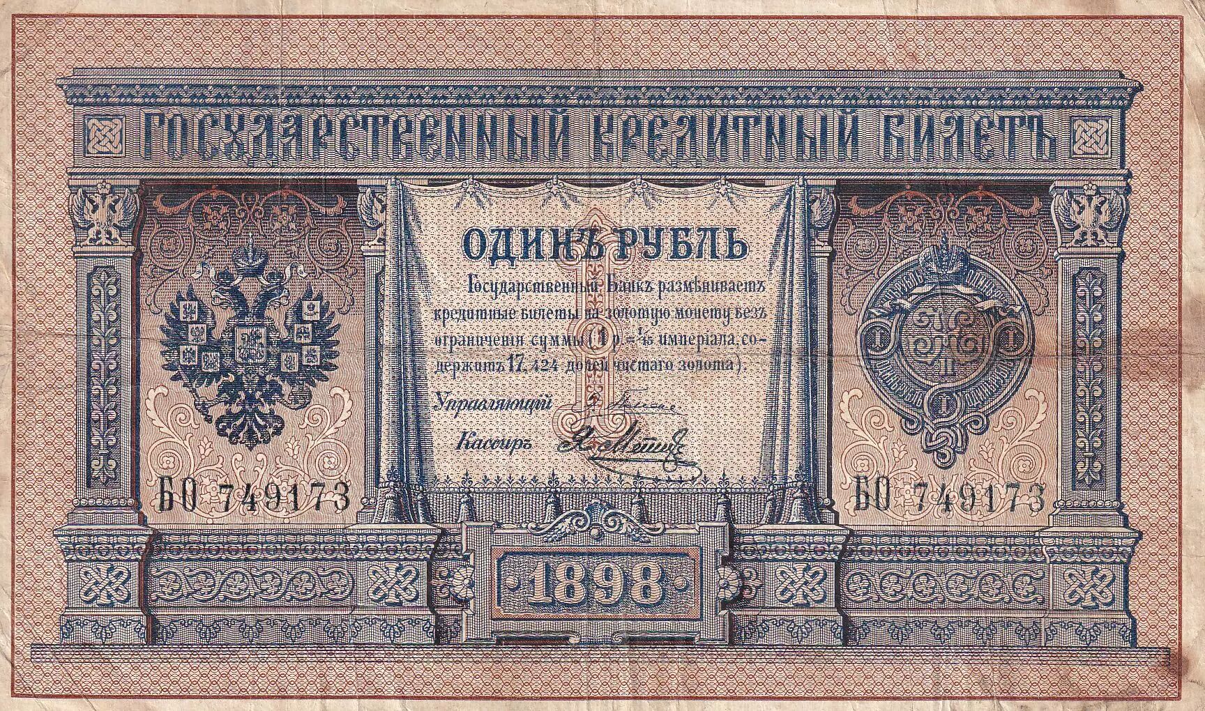 Accueil > Archivage > Russie 1 Rouble - Armoiries - Colonnes - Sign. Pleske (1898-1903) - P1.a