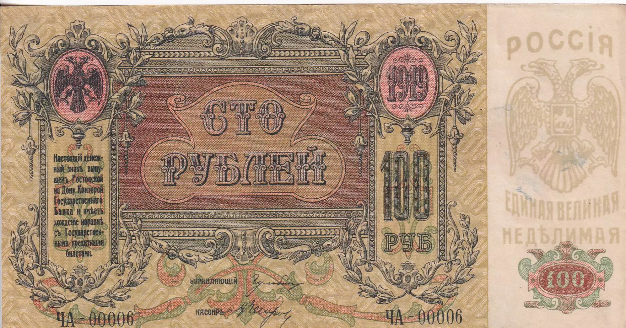 Accueil > Archivage > Russie 100 Roubles - Sud Russie - 1919 - P.S417a